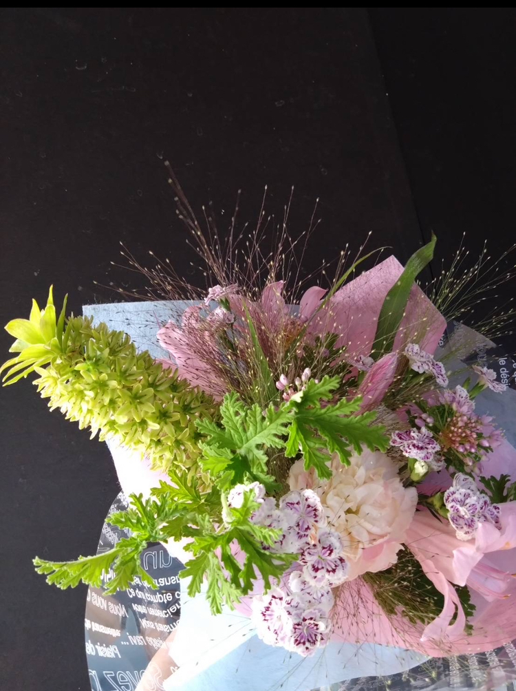 舞台での演奏は晴れ舞台。女の子と男の子への花束を準備。