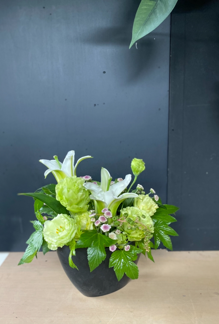 法要の日。気持ちを届けたくて、でも余り仰々しくならないように慎ましやかなアレンジを。
