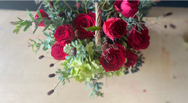ワレモコウ。ひびきが素敵。秋の訪れを知らせてくれるワレモコウ。真紅のバラもワレモコウといっしょにいると少しカジュアルな感じに。