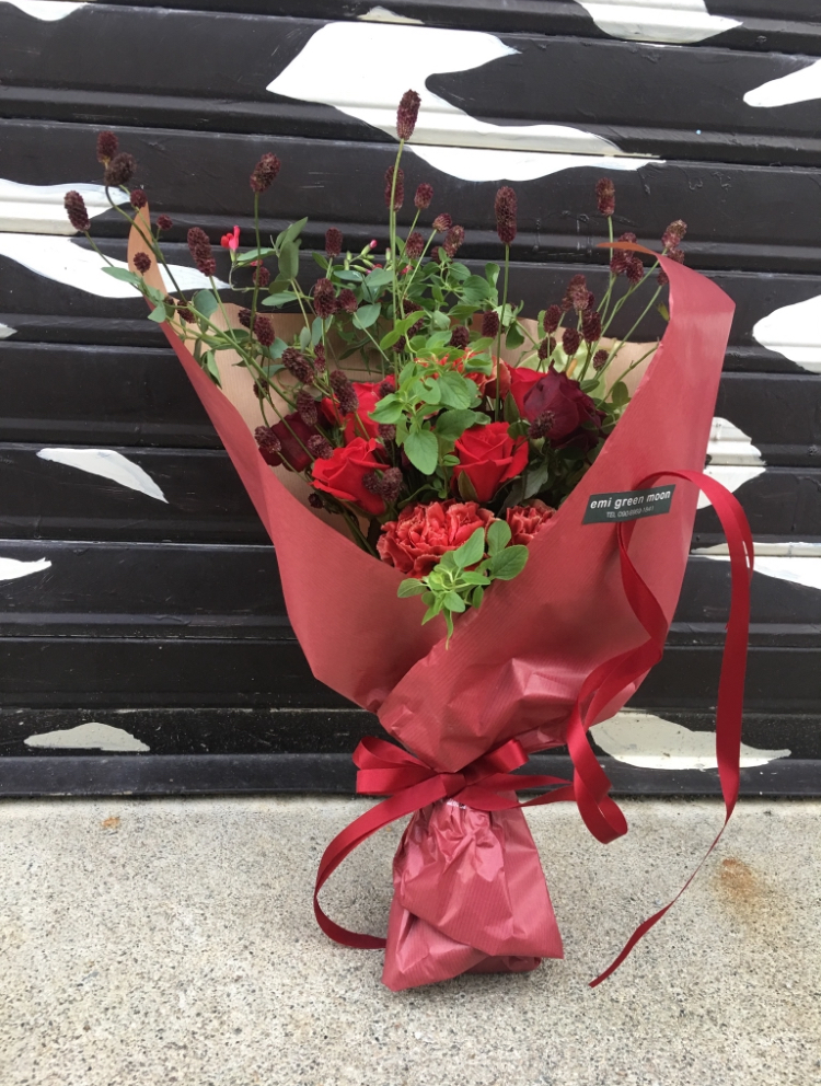少し前のワレモコウの季節。ワレモコウ…その名も魅力的ですね。ワレモコウ色のバラやカーネとたっぷりのワレモコウ。ワレモコウの花束です。