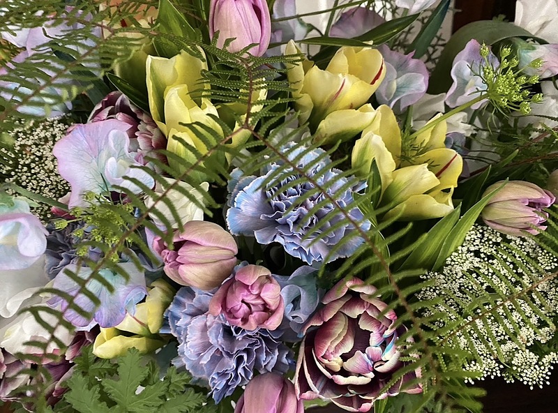 お花専用の染料を吸い上げてグラデーションカラーに仕上がった、カーネーションやフリージア。