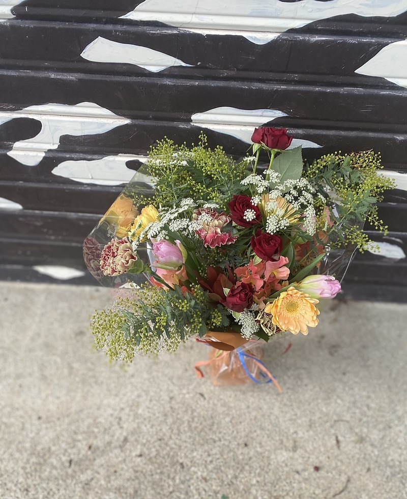 赤、オレンジ、ピンク、イエロー。花の種類も色もいろいろ。いろいろを束ねる。とても春を感じる。