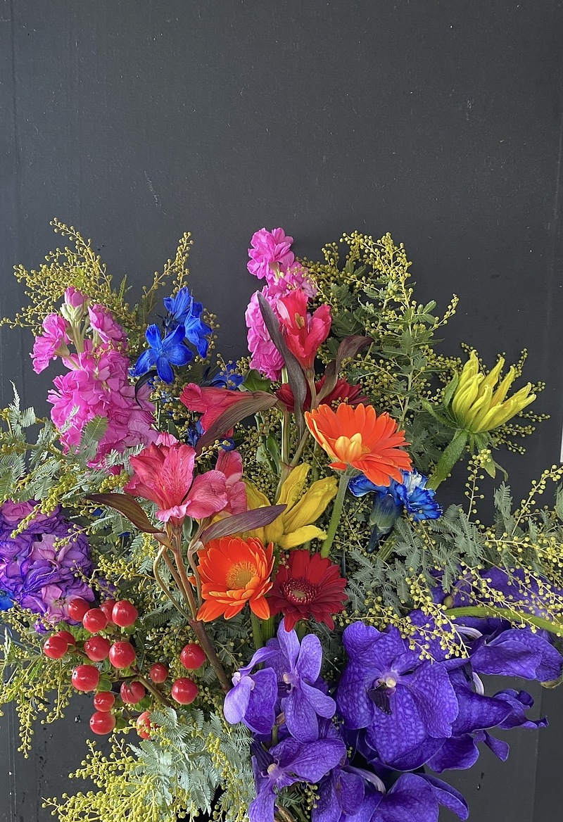 ピンク、紫、赤、黄色、オレンジ!原色をぶつけ合う楽しさ!明るさ!