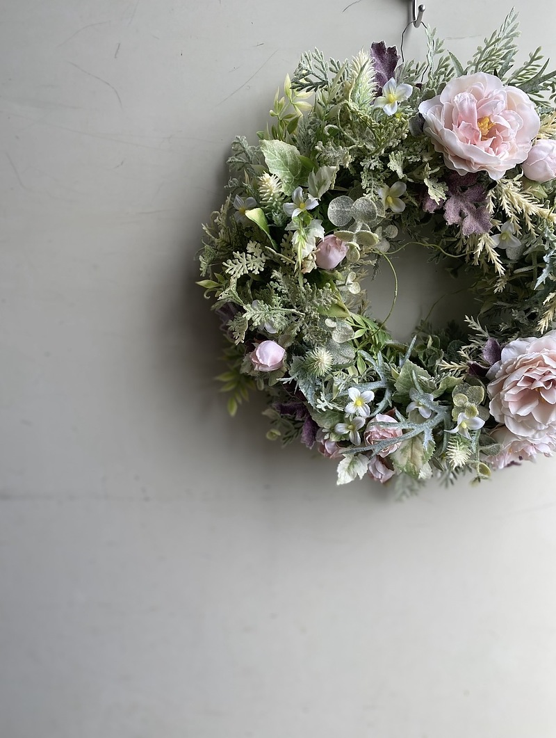 雪解けに徐々に緊張が緩む待ち侘びる春がここにあるような…そんな淡いピンク色のリース