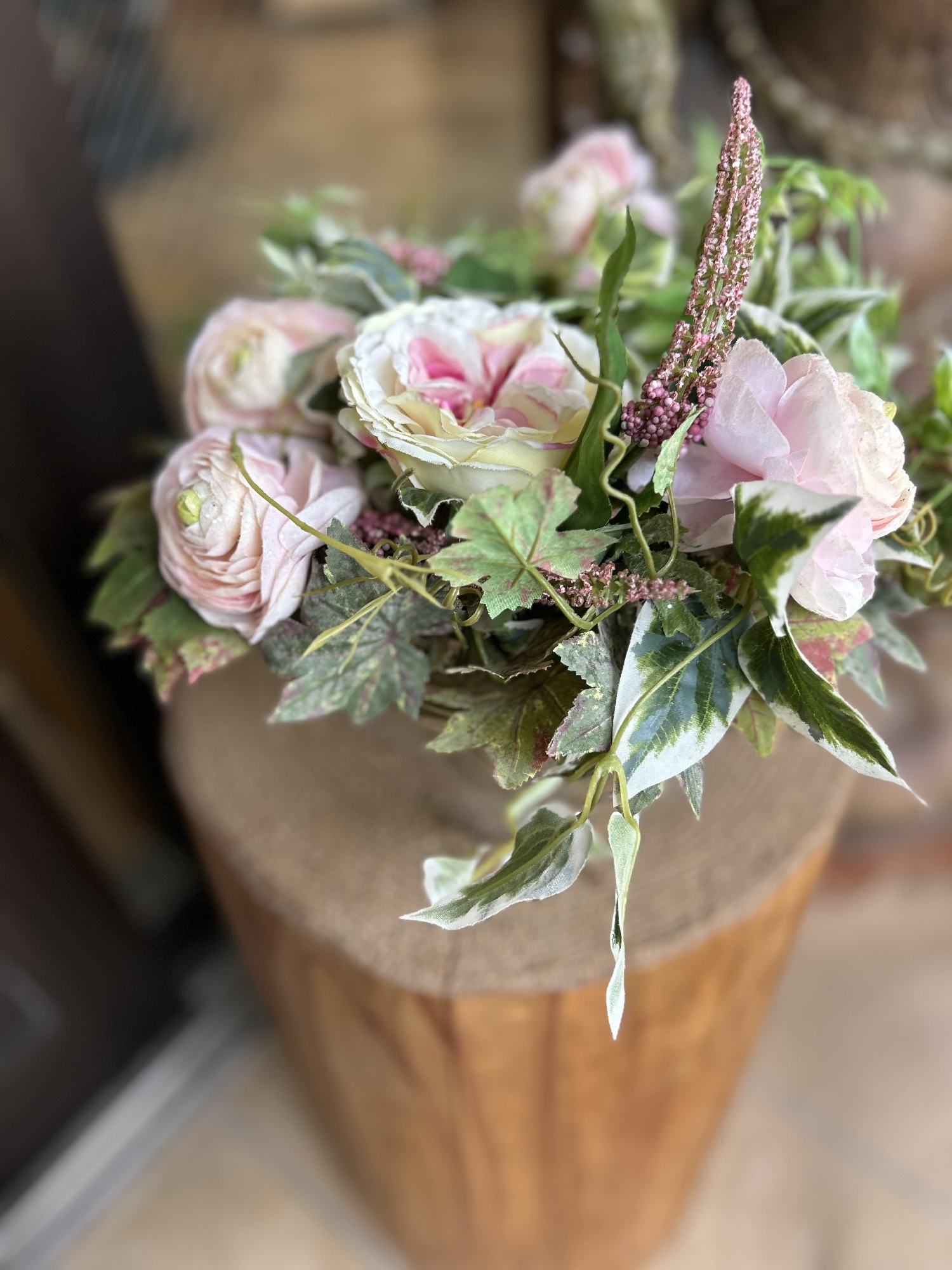 ヘアーカットサロンのエントランス。春色でお出迎えです。