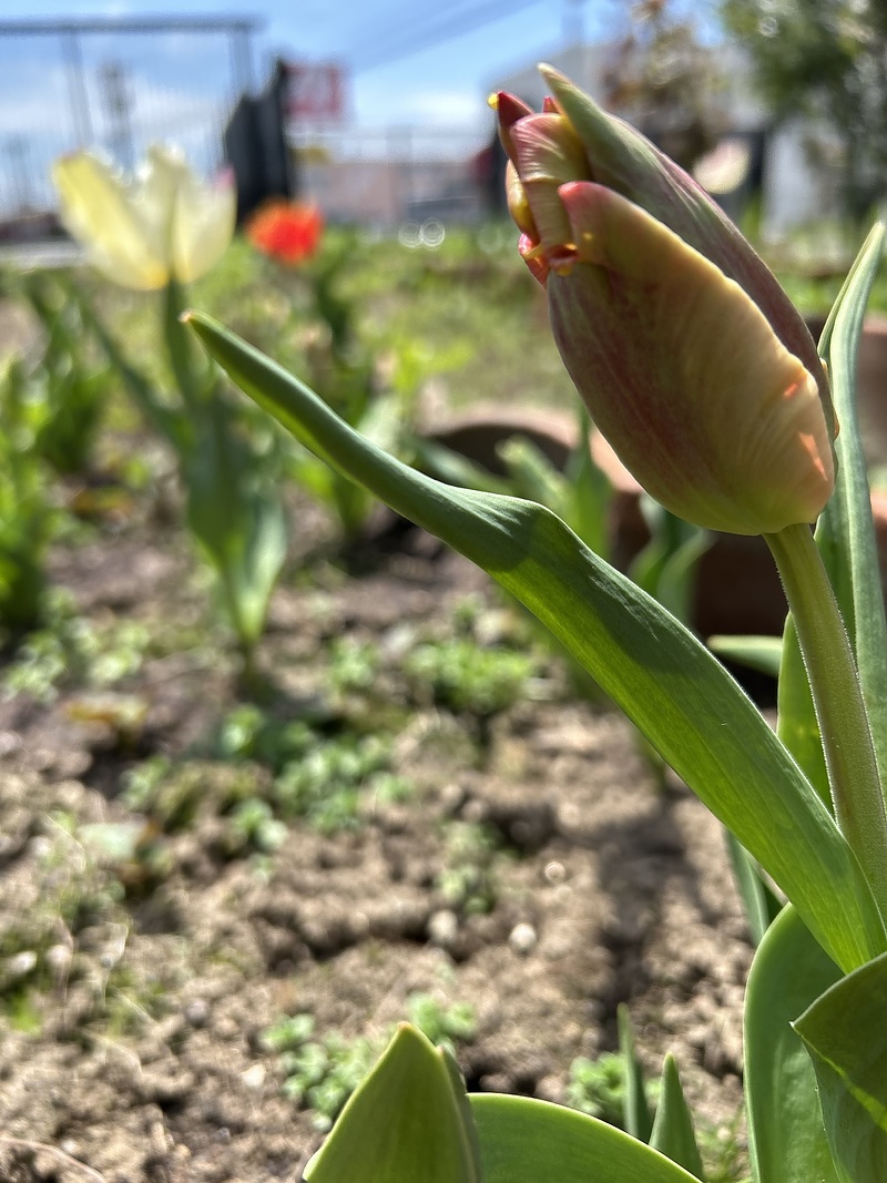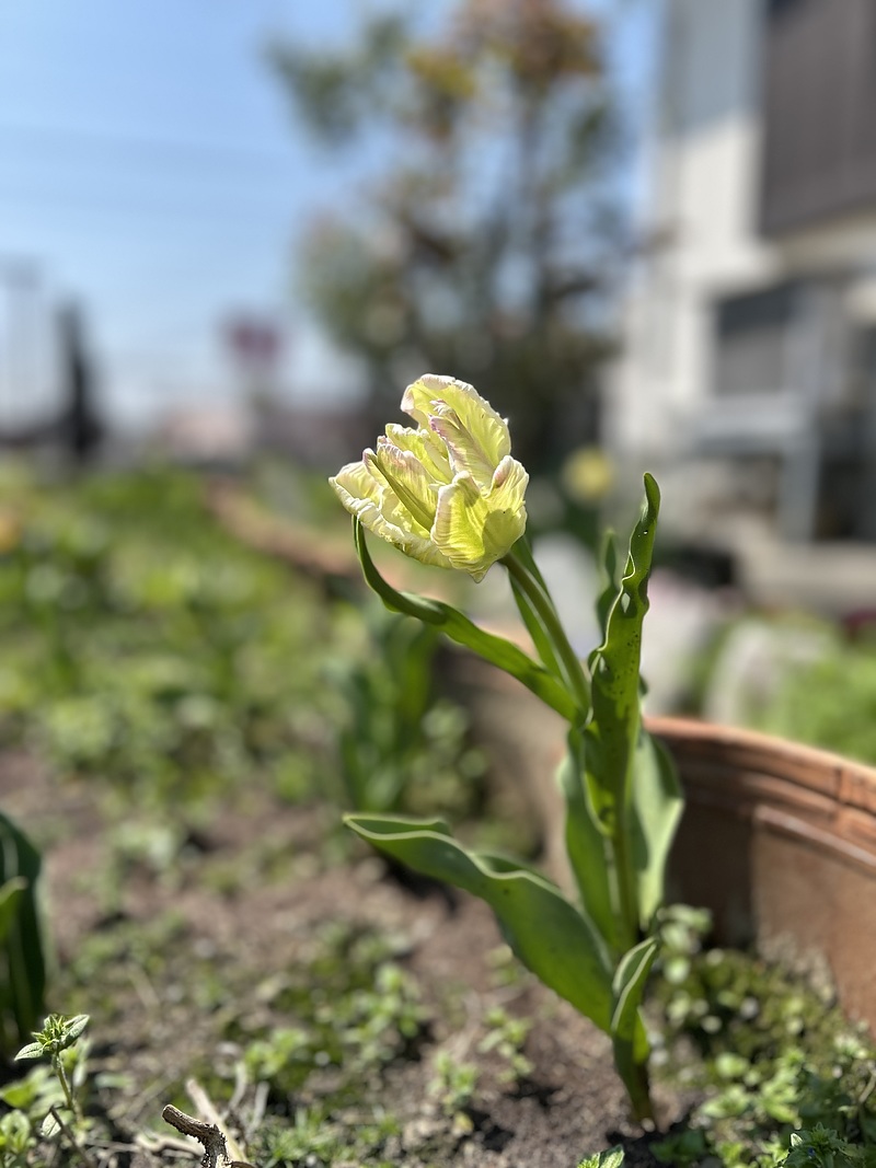オランダらしいというか、異国情緒あるギザギザふわふわの花びらを持つチューリップたちが咲いてくれました。