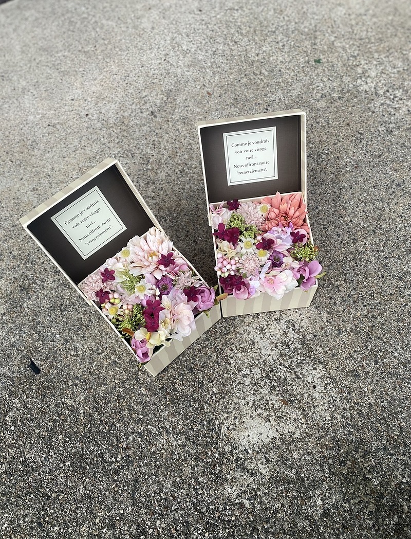 ボックスフラワーもそのボックスのサイズによって花選びが変化します。スモールボックスにはミニサイズのお花をチョイスして、ふんわり優しい春のイメージで。