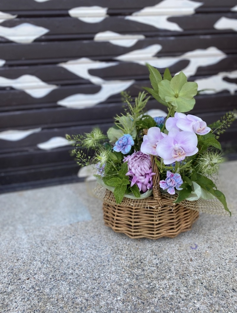 かごにお母さんの好きなお花を詰め込んで。お母さん、ありがとう!