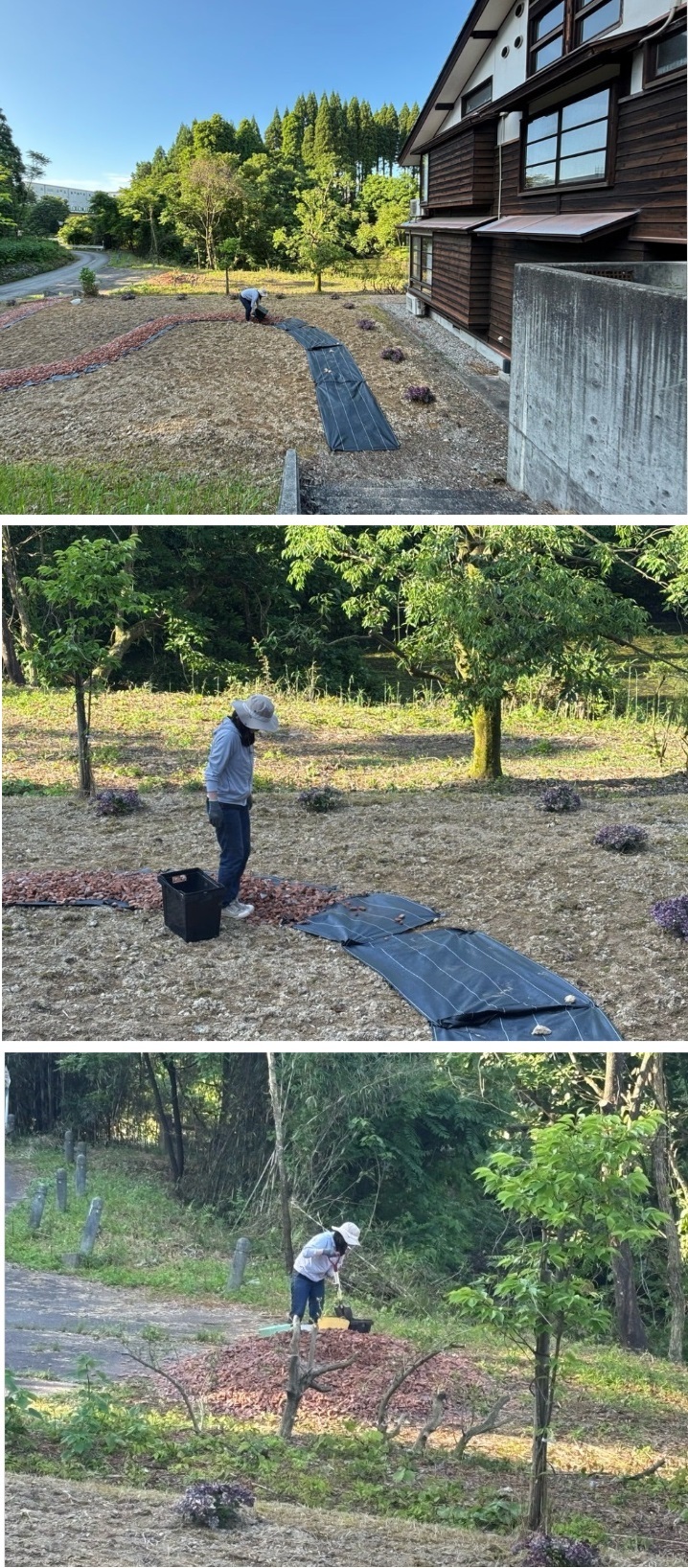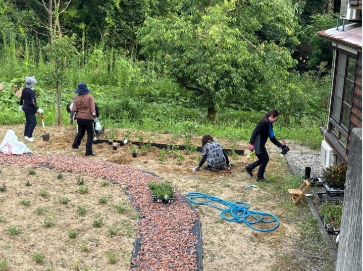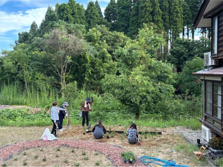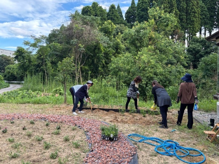 花まつフラワーアカデミー事務所からの有志6名。いつものオフィスワークとまるで違う、