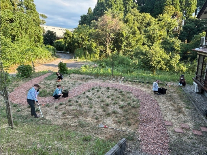 先日植えた花の周りには、すでに草が元気いっぱいに…。みんなは、とっても丁寧なの。上手にテキパキと、