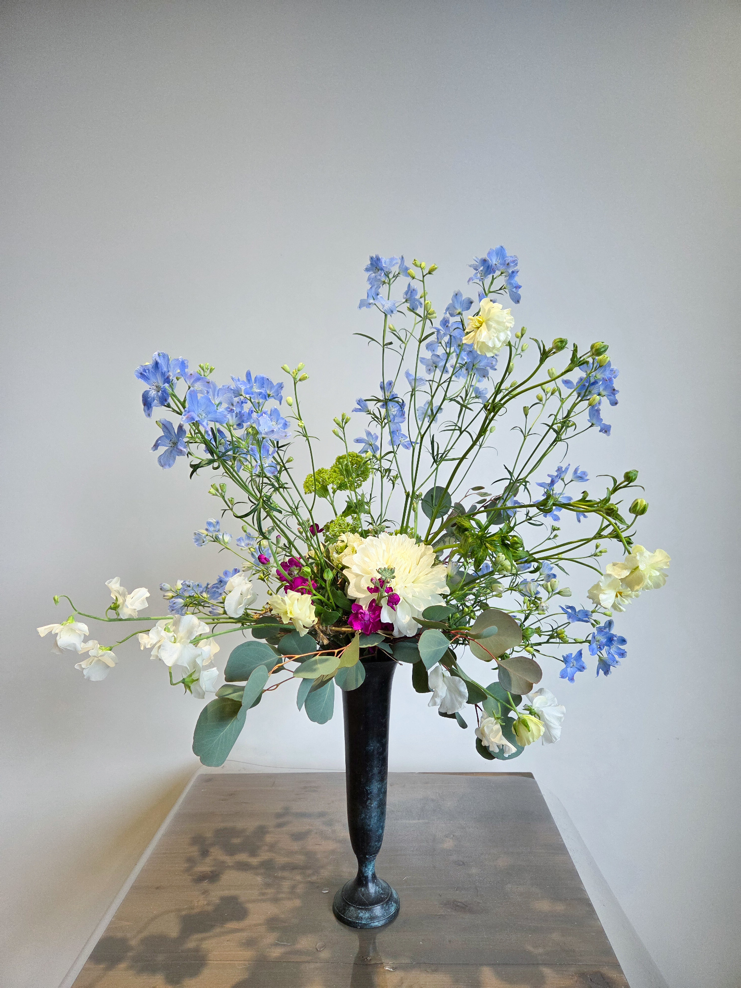 とりわけ春の空を思わせるデルフィニウムのブルーは