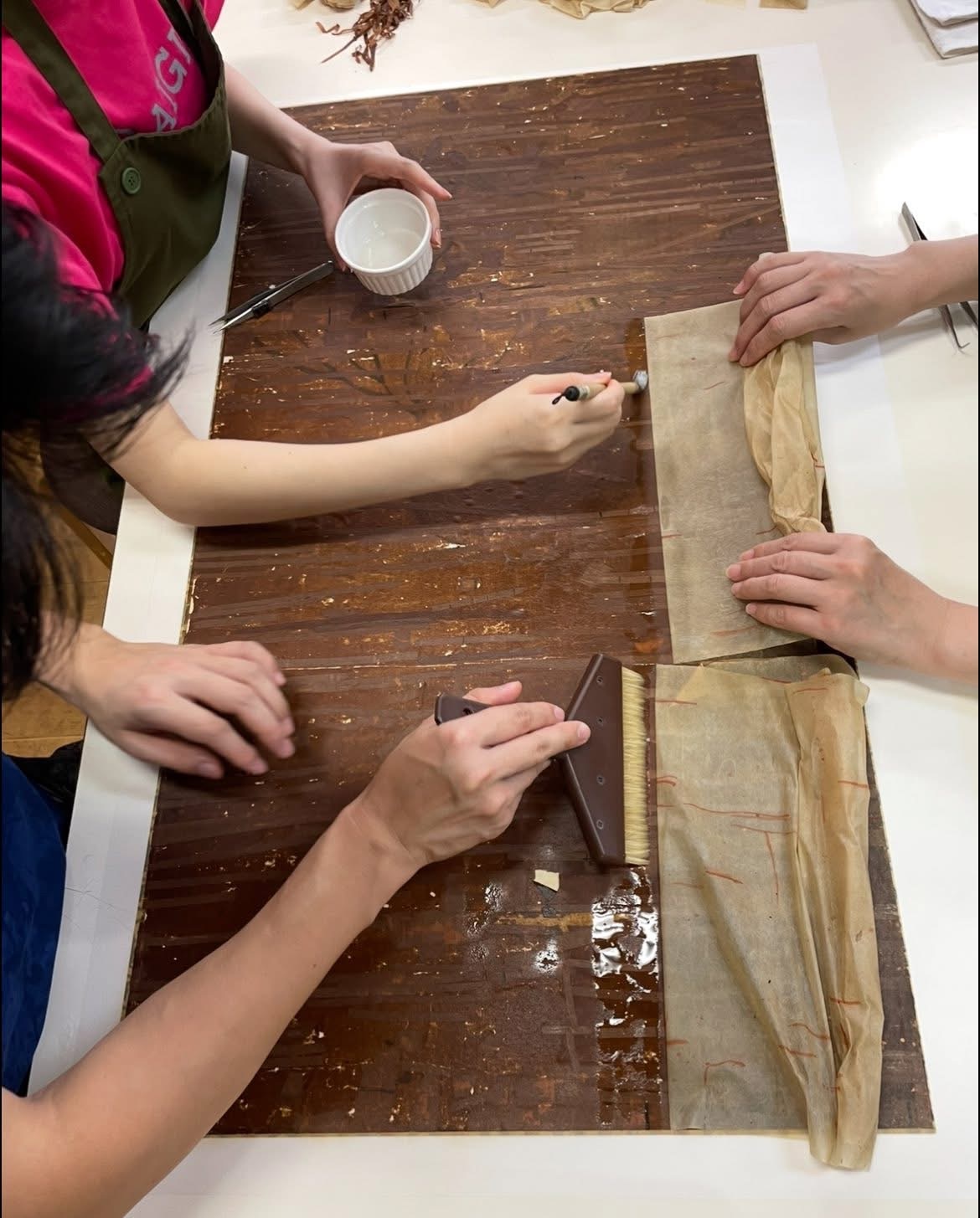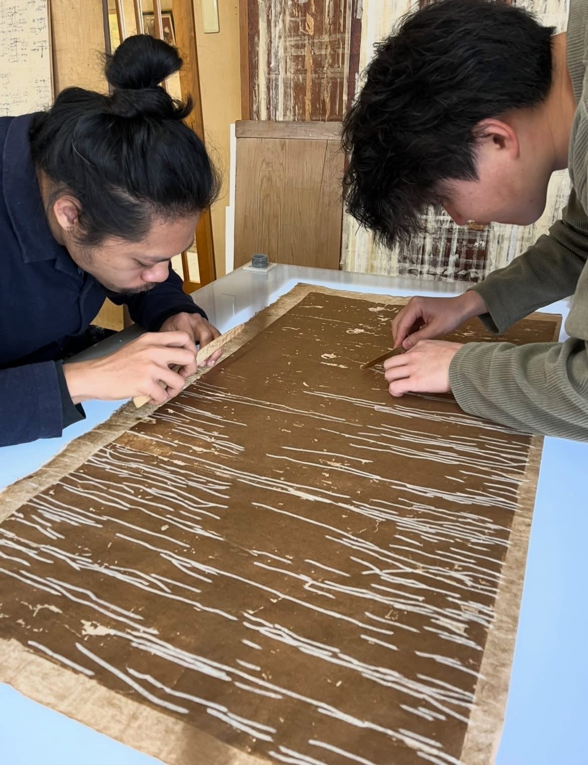 集中しながらゆっくりとめくる人と本紙がくっついてくるのを刷毛で抑える人と息を合わせながらの作業でした。