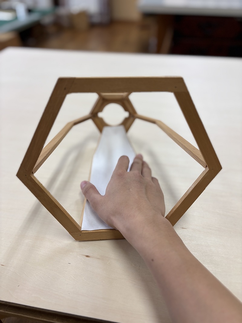 最後の一面は両側に和紙が貼ってある状態なので両手を中に入れて作業することが出来ません。