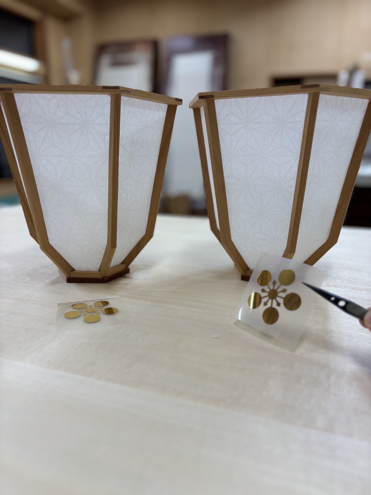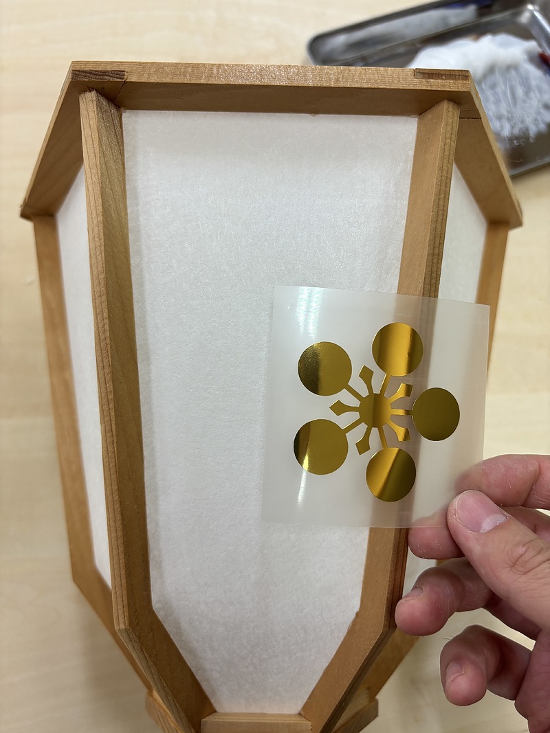 そして最後に梅鉢紋のシールを貼ります。