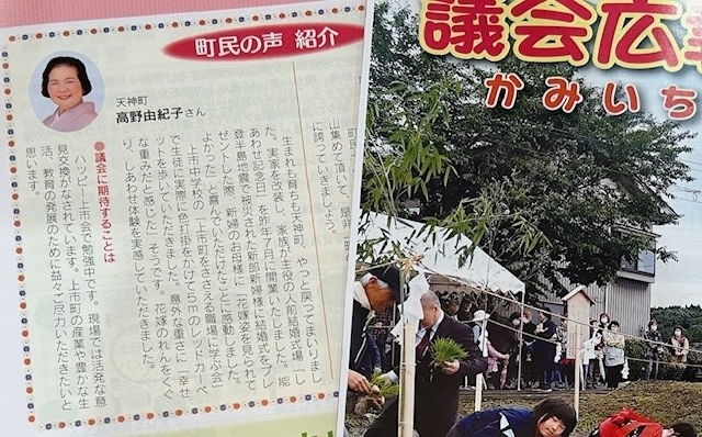 富山県上市町の議会広報が7月中旬に各戸に配布されました。この号の最終頁の町民の声紹介の欄にしあわせ記念日の髙野由紀子としておかげ様で掲載していただきました。ご縁に感謝いたします。