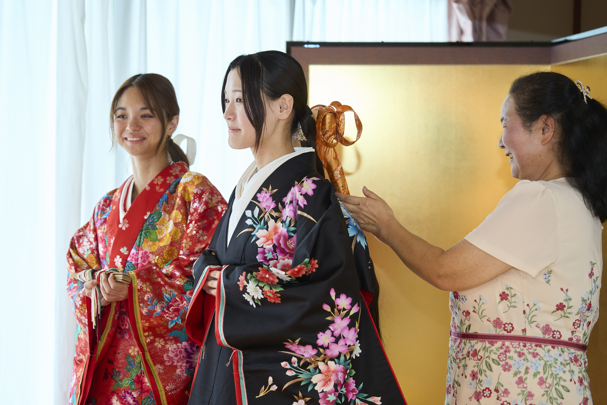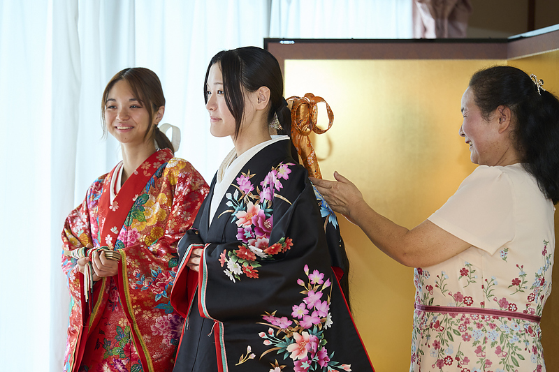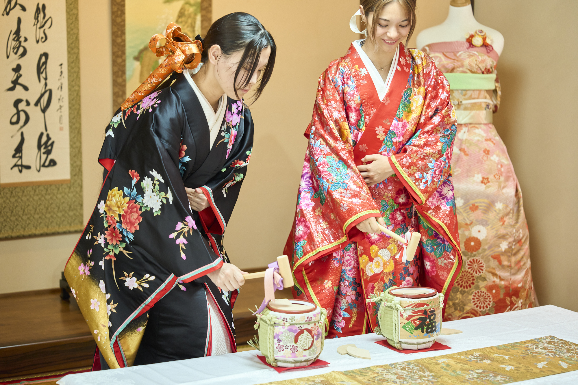 明朗で活発な方々とご一緒させていただき、新しい視点は勉強になります。成人式や卒業式のための振袖と、斬新な振袖ドレスも提案しました。大切な振袖を裁断することなく着付の技のみでドレスのように着付けるもので、最近特に注目を浴びているようです。うちではさらにイベントとして楽しい企画を提案させていただく予定です。どうぞお楽しみに!