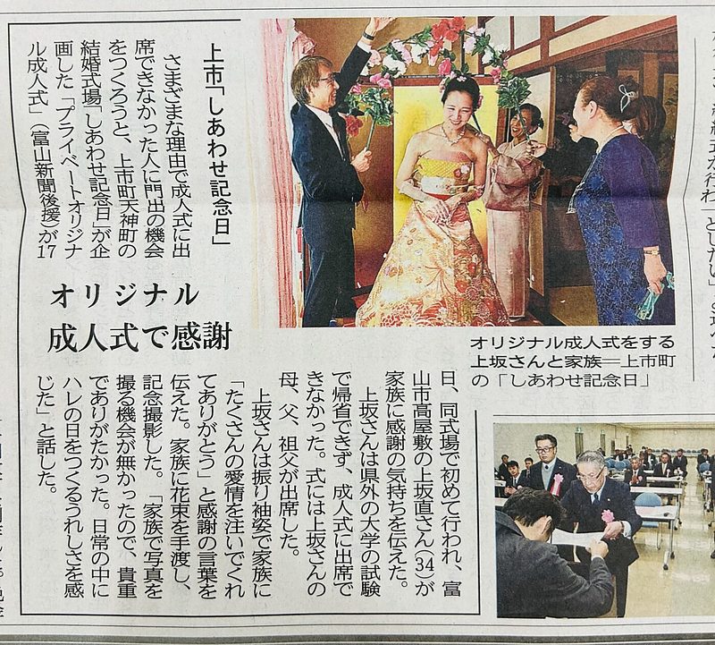 オリジナルプライベート成人式 富山新聞朝刊に掲載されました2025.11.18 ご縁に感謝いたします