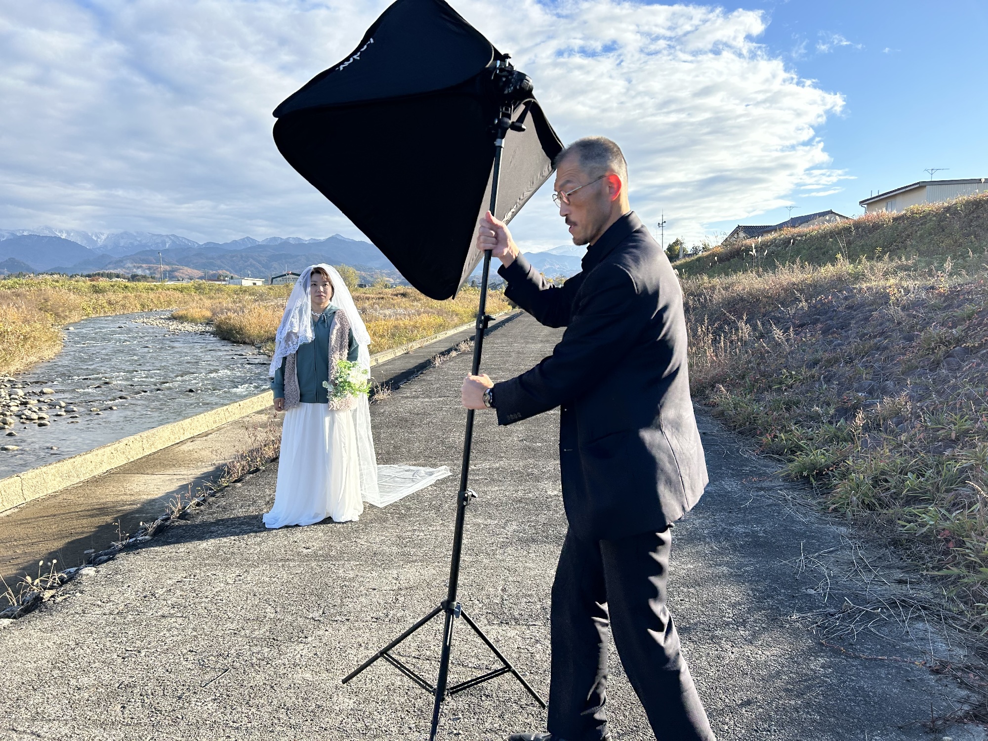 映画のロケでも有名になった上市川堤防にて 初めてのドレス姿撮影舞台裏
