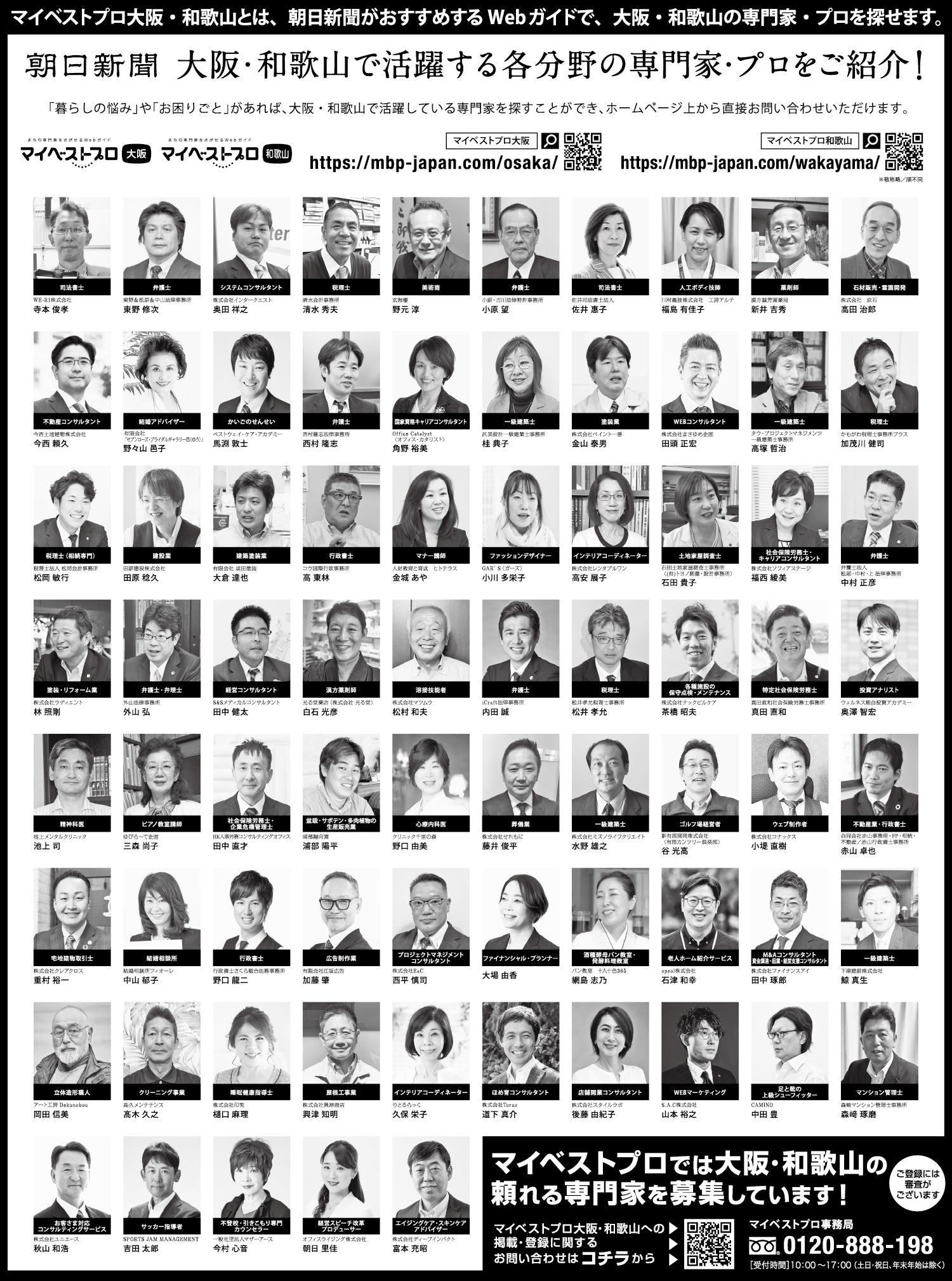 2025年8月30日(土)の朝日新聞に「マイベストプロ和歌山」の顔写真付き新聞広告が掲載されました!