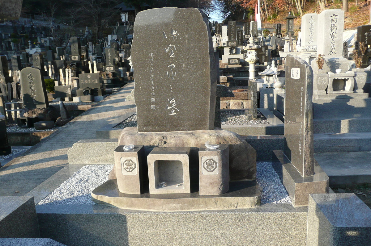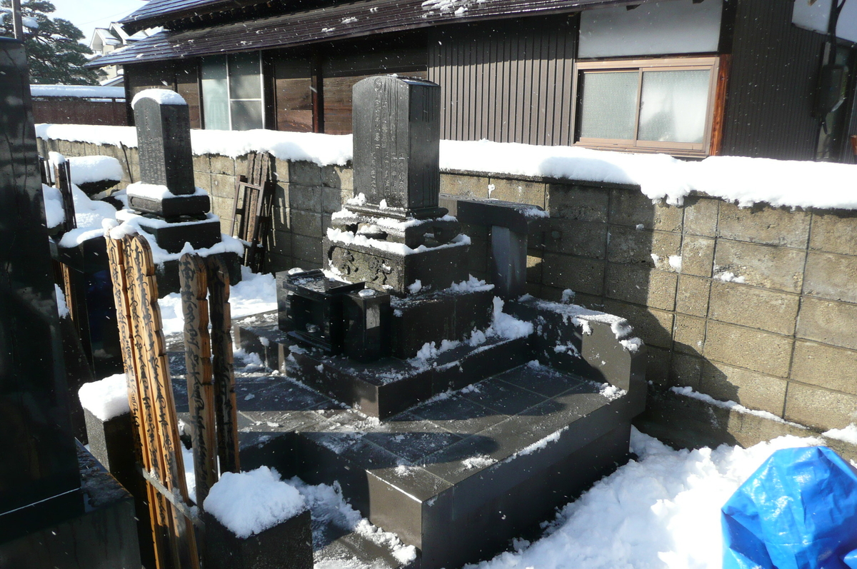 先日もご紹介させていただいた蔵王の石、基礎石部分です、お墓は古いものを再建立で、やはり古い墓には蔵王の石を、色のバランスは申し分ないかと思います。