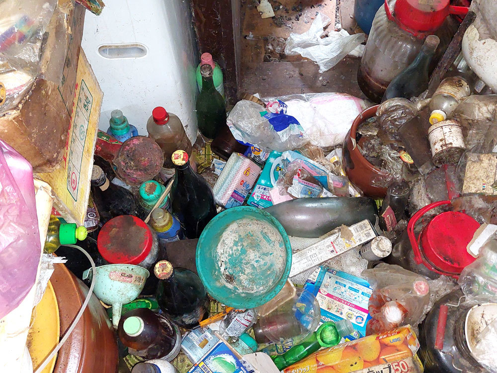ある意味感心させられました。床下、天井裏全てゴミ山となっております。