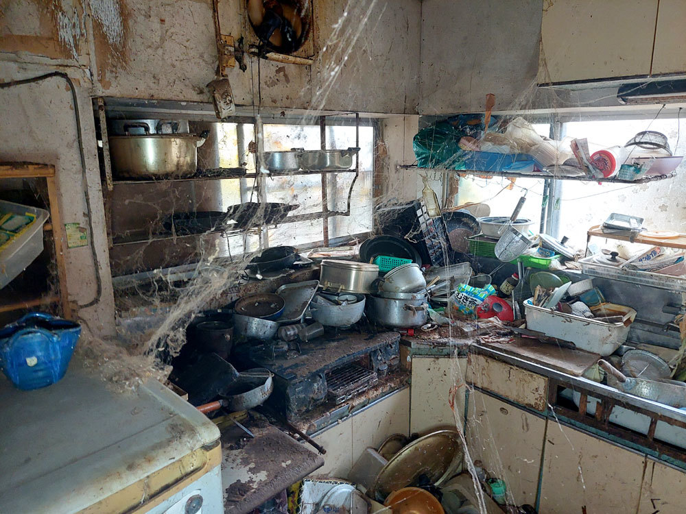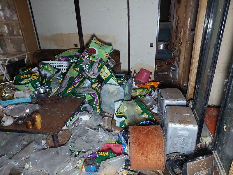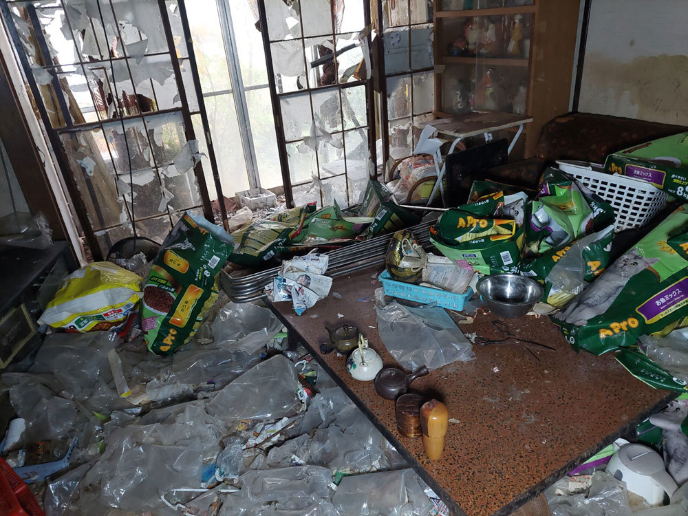 屋内全体が一見ゴミ屋敷状態で、以前にはペットも数匹を飼っていた時期もあり、