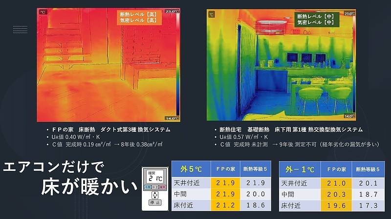 上の赤外線写真を見てください。これが庄内地方によくある「冬に寒い家」の現実です。 暖房で温めた熱が、窓や壁からどんどん外に逃げ、あなたは「外を温めるために高い電気代を払っている」状態かもしれません。