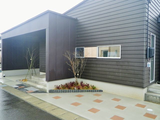 スクウェアなデザインに建物とガーデニングが統一されているのが良く分かります。