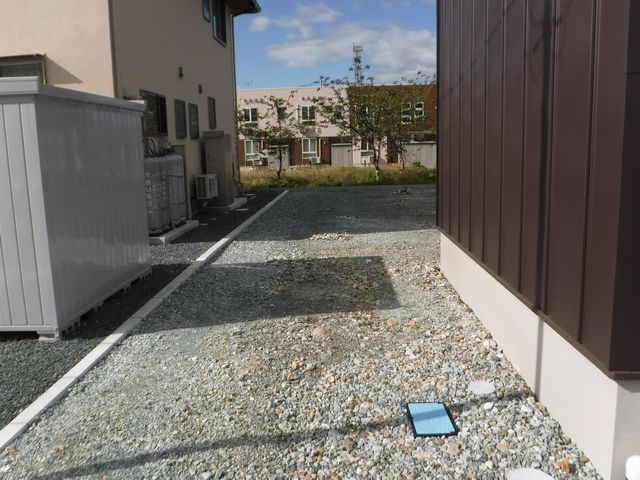 三角形の植栽スペースを作って雑木(オトコヨウゾメ)を植えました。