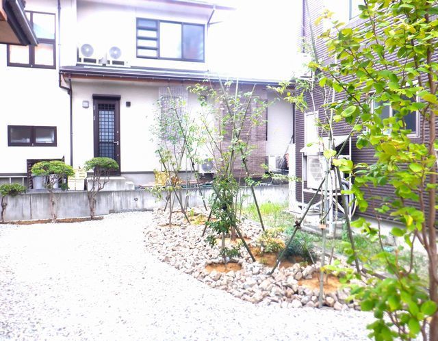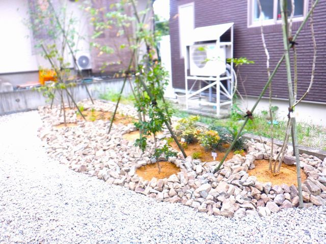 それ以外は防草シート+山砂利or玉砂利敷でシンプルにまとめました。