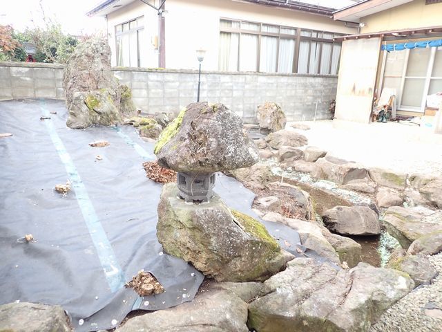 防草シートを上に張って、玉砂利でお化粧しました。