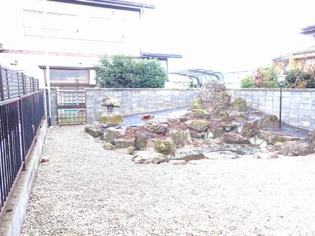 防草シートを上に張って、玉砂利でお化粧しました。