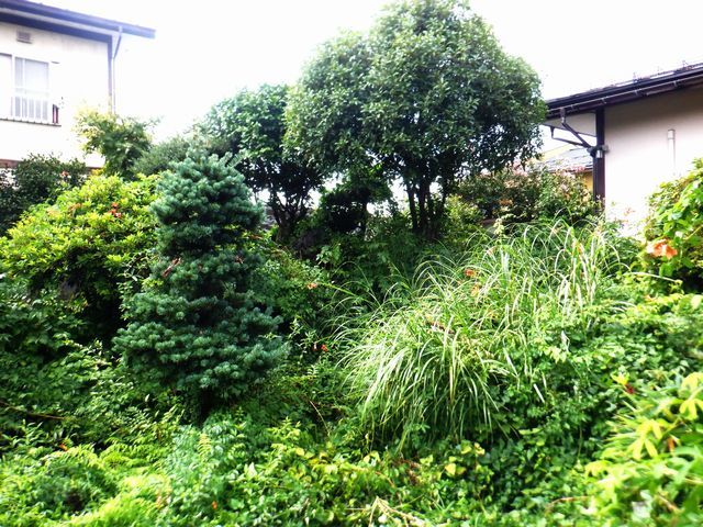 築山の伸び過ぎた全ての樹木を伐採し
