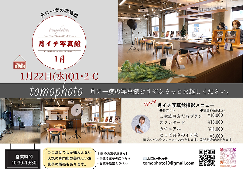 tomophoto【月イチ写真館】はどなたでも気軽にお立ち寄りいただける月に一度の写真館。Q1で開催