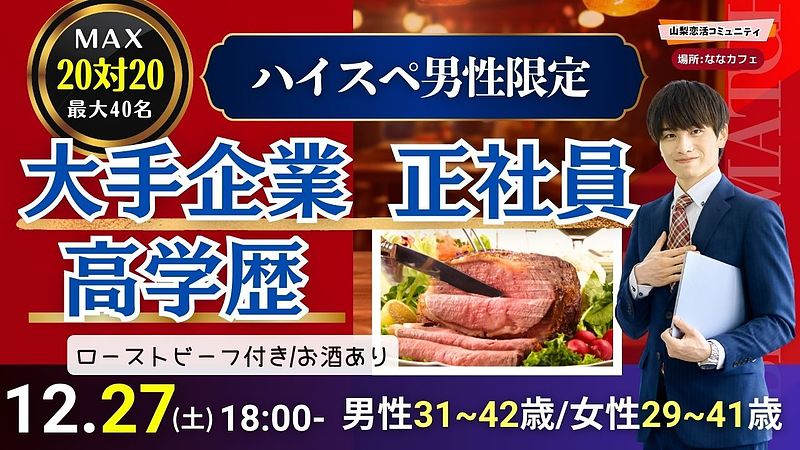 今回は、大人気の【大卒・大手企業・正社員・安定収入男子】との婚活イベントを開催します!
