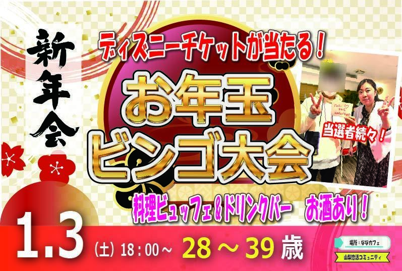 ディズニーチケットが当る!お年玉ビンゴ大会 【28~39歳】目指せ!2,100回大新年会(お酒有)|1月3日(土)18時~開催