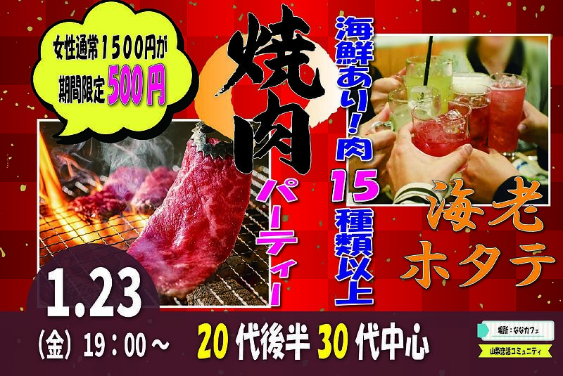 【20代後半30代中心】めっちゃ盛り上がる肉&海鮮豪華焼肉パーティー婚活!|1月23日(金)19時~開催
