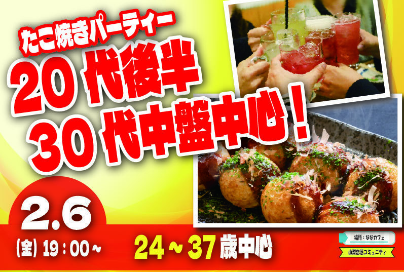 【24~37歳】銀○こを超える?20代30代中盤中心!盛り上がるたこ焼きパーティ恋活!|2月6日(金)19時開催