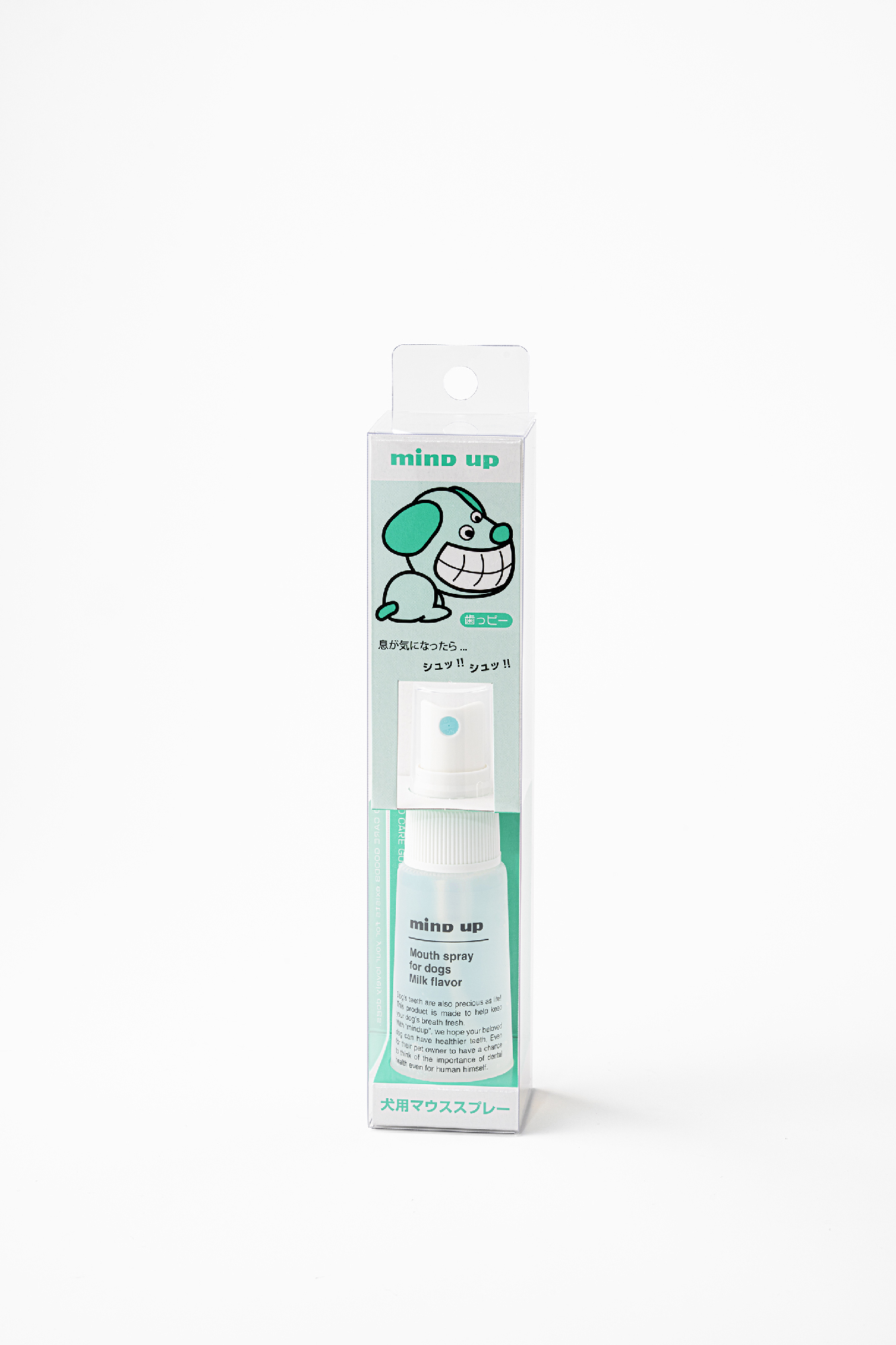 家族の一員になった愛犬の歯を磨く飼主さんは、だいぶ増えておりますが、まだ、全体の20%と推計されています。ドッグフードの進化や医療の発展により、ワンちゃんの寿命も長くなりました。その反面、口腔内の衛生状況が芳しくないワンちゃんも多くなりました。毎日の歯磨きで、予防してあげることは可能ですが、なかなか歯を磨かせてくれません。「噛まれるから」「嫌がってかわいそう」などを理由に歯磨きを断念されているようです。歯を磨けていないワンちゃんは、お口のトラブルの進行や歯石の付着などで、お口のニオイがすると思います。その気になるお口のニオイを1プッシュ2プッシュで感じなくさせてくれるのが、「犬口ケア マウススプレー」です。