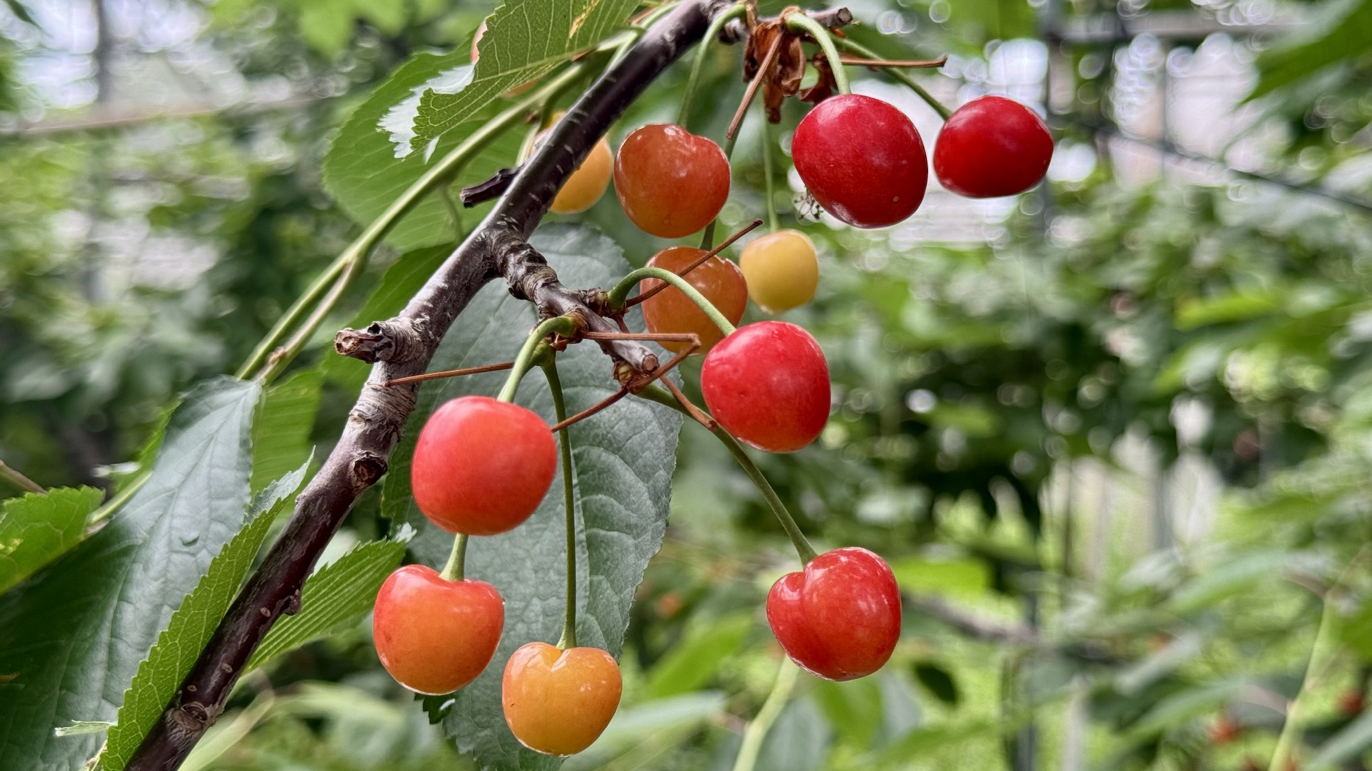 サクランボの収穫時期は例年5月末頃から6月半ばまでとのこと。サクランボの品種は約1,000種類もあると聞いて、子ども達も驚いていました!