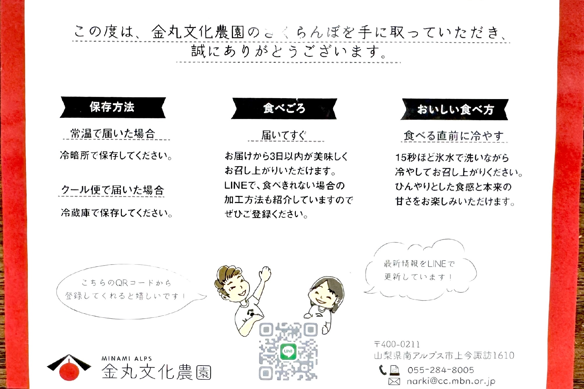 金丸文化農園さんにはサクランボの繁忙期であるにも関わらず、子ども達のために貴重な時間を割いて頂きました。金丸さんご夫婦には心より感謝申し上げます。