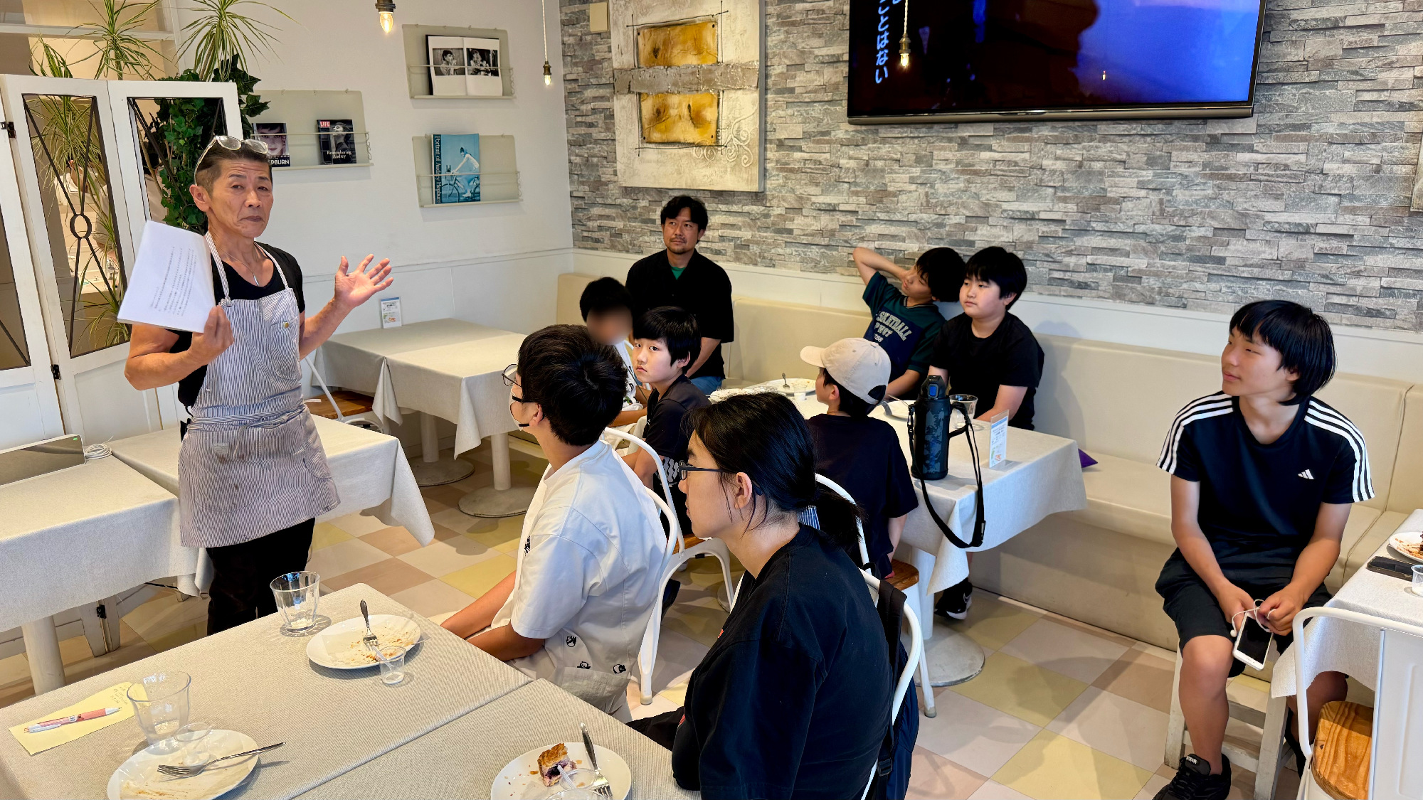 この仕事をやって良かったと思うのは、お客さんから直接「美味しかった!」という言葉を頂いた瞬間。参加した子ども達から「この仕事は好きですか?」との質問に「大好きだよ!」と即答されたのが印象的でした。そんな入倉さんから子ども達に対して大事なことは、学校の勉強よりも好きなことをとことん究めること。好きだから続けられるし、アイデアも湧いてくるんだよ!とのメッセージを頂きました。また、飲食業という非常に厳しい業界で20年も続いている秘訣は、もっとお客さんに喜んでほしいという想いを持ち続けることだそうです。1日に作るケーキの数や、使用するフルーツへのこだわり、大手の洋菓子店との違い、仕事をやる上で心掛けていることなどなかなか聞くことの出来ない貴重なお話を沢山窺いました。この時間が子ども達にとって仕事の意義を考える契機となれば本望です。