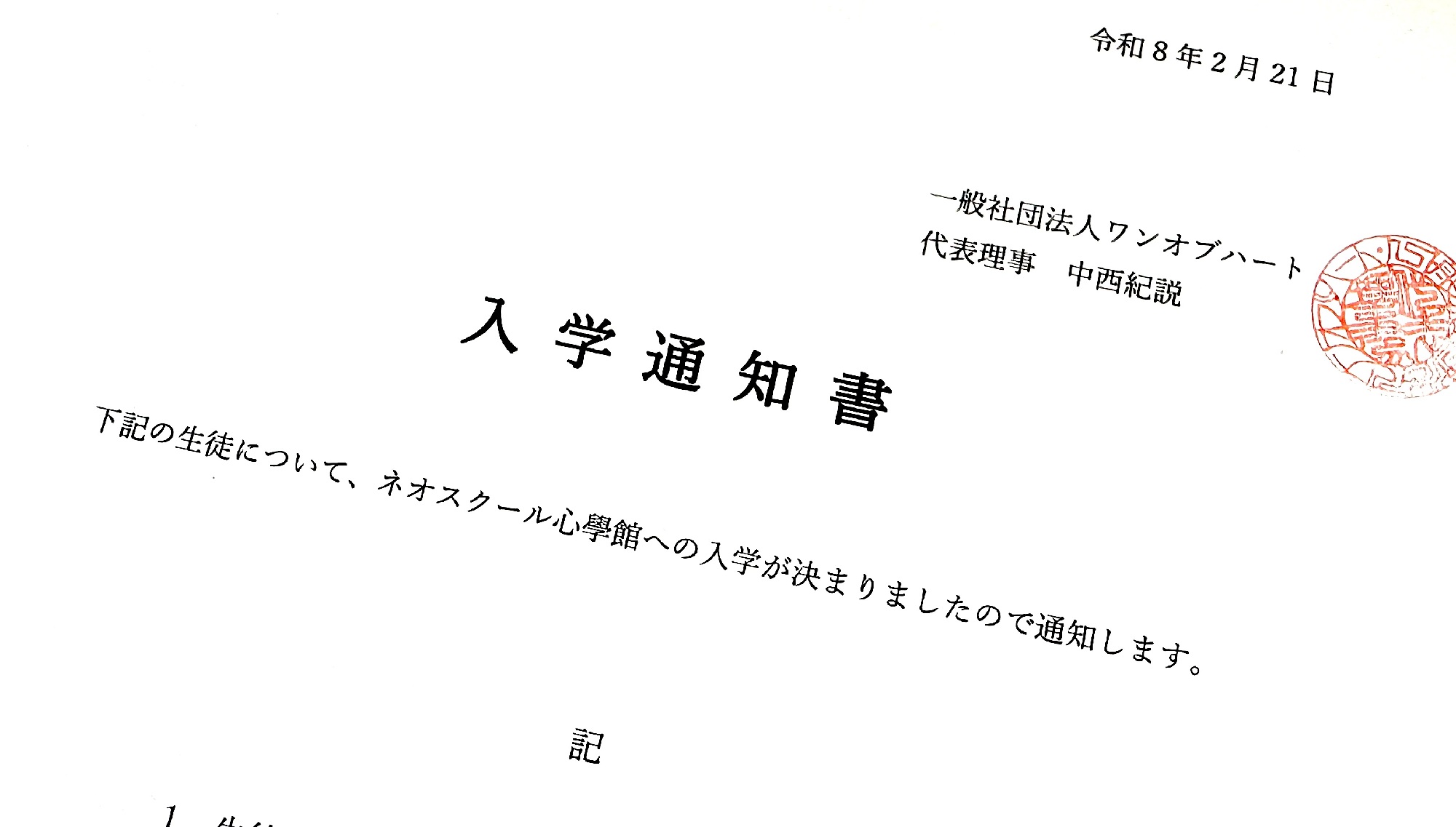 先日、遂に心學館の正式入学者第一号が決まりました!