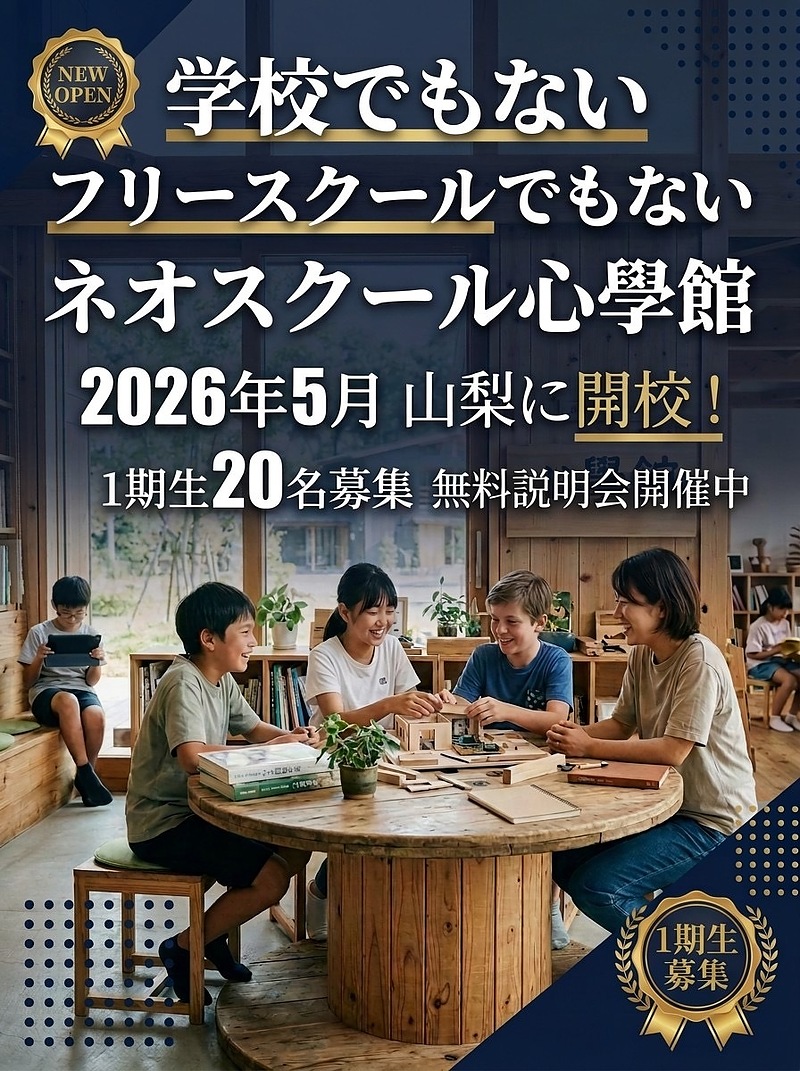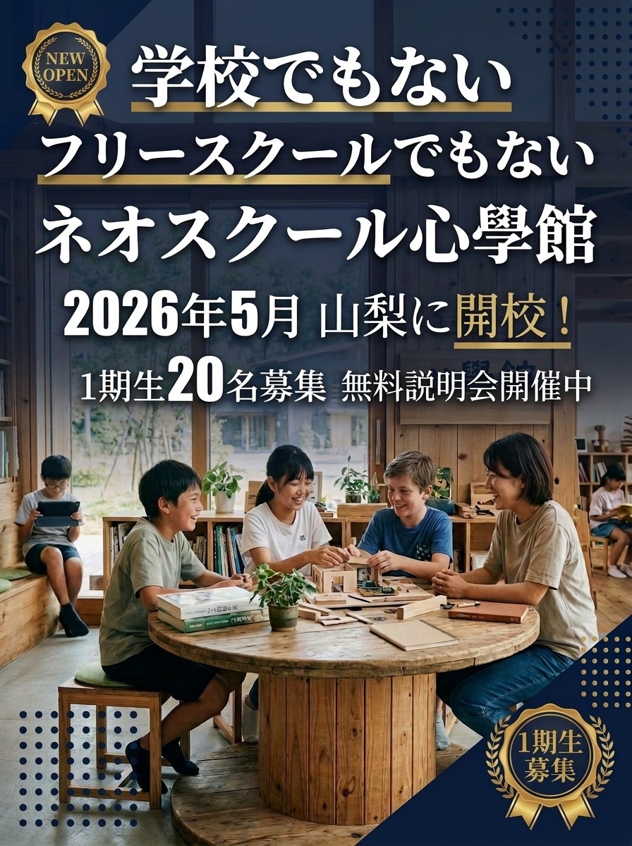 ここは非認可の学校ですが、フリースクールではありません。敢えてフリースクールやオルタナティブスクールとは名乗りません。ネオスクールというまだその概念すらない學校です。現行の教育的価値と言えば「いかに偏差値を上げられるか?」しかありません。私達はこれに異を唱え、心を育むという新たな教育的価値を創造していきます。