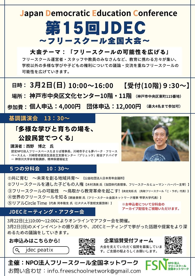【第15回 JDEC〜フリースクール全国大会〜 参加申込受付中!】