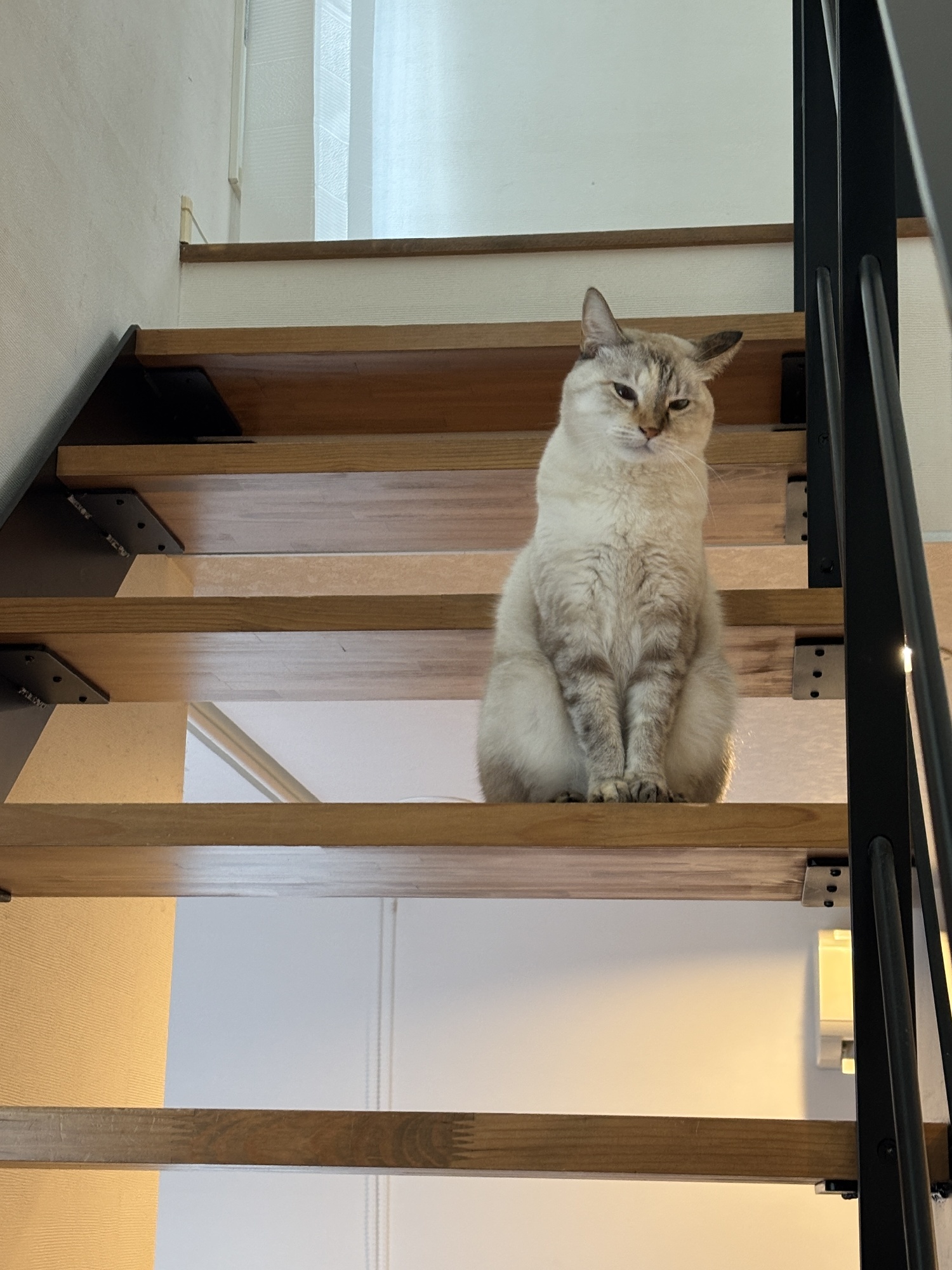 朝ぼーっと、やる気マイナス100%でお見送りする我が家のおネコ。まぁ、お見送りしてくれるだけ素晴らしいですが。。。
