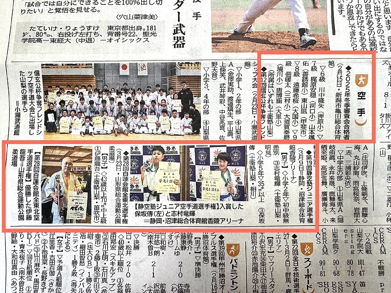 4/1に続き4/2の山日新聞に、大会の入賞者が掲載されました。