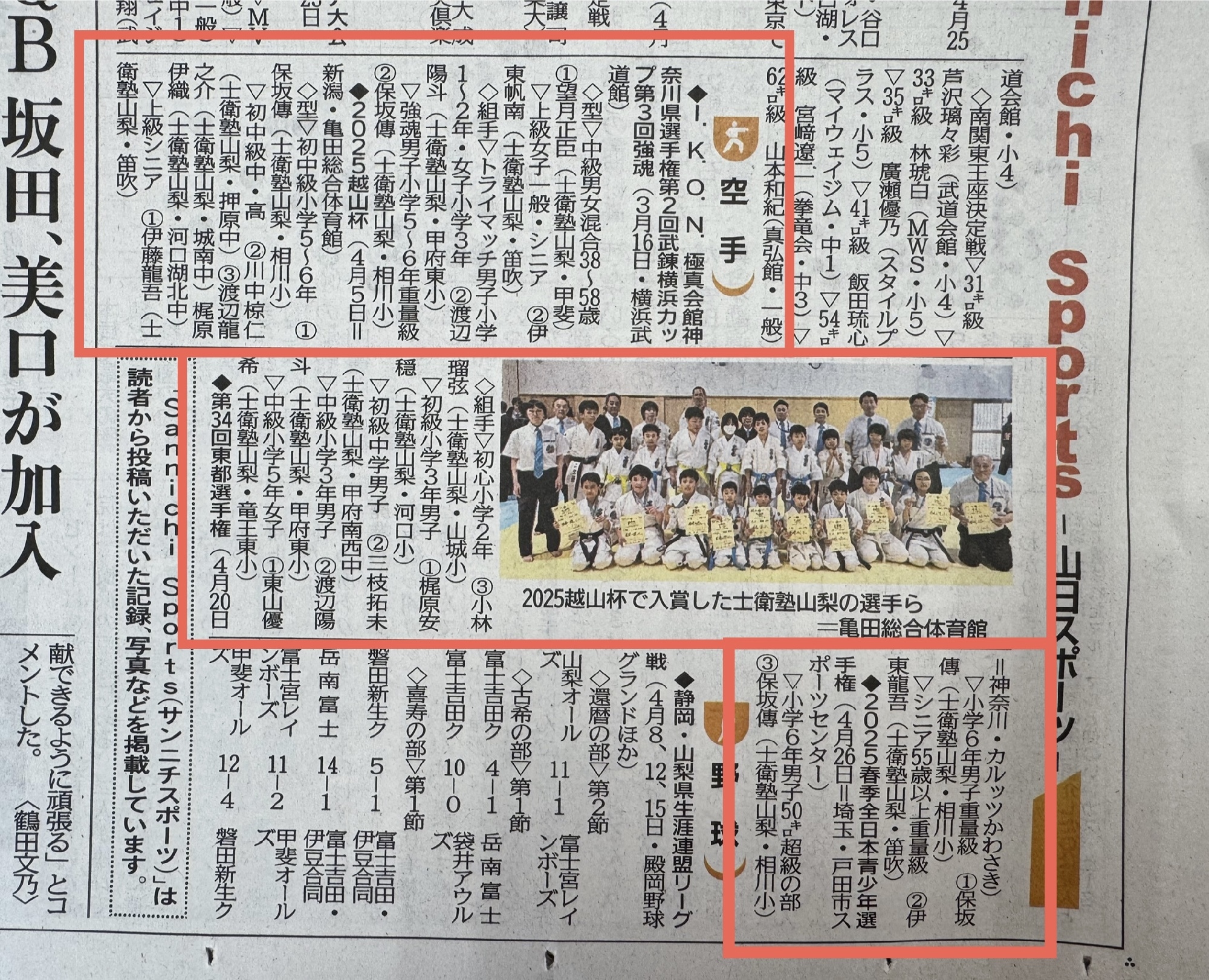 6/3の山日新聞に、大会の入賞者が掲載されました。