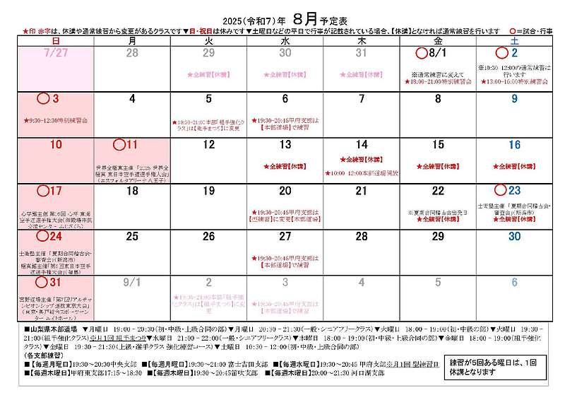 ▼ 8月22日 (金) ~ 23日 (土) 全練習【休講】