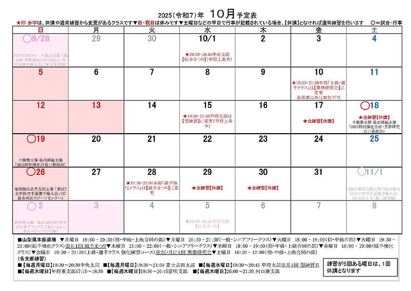 ▼ 10月15日 (水) 19:30-20:45 【型練習】 (甲府上条中)